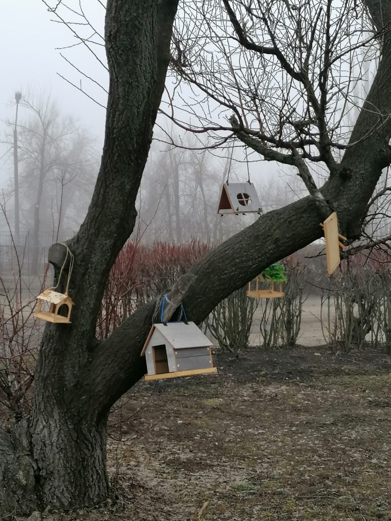 В гимназии имени Чехова не просто кормушки для птиц, а настоящая «столовая».