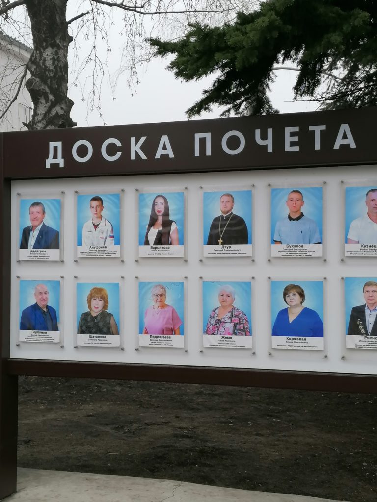 На городской Доске почета — фотографии передовиков производства, общественников, активистов, педагогов, спортсменов, волонтеров и представителей духовенства.