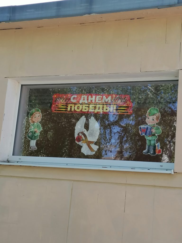 В год 80-летия Победы фасады и окна учреждений в Зверево украшены символами и плакатами, посвященными Победе в Великой Отечественной войне.