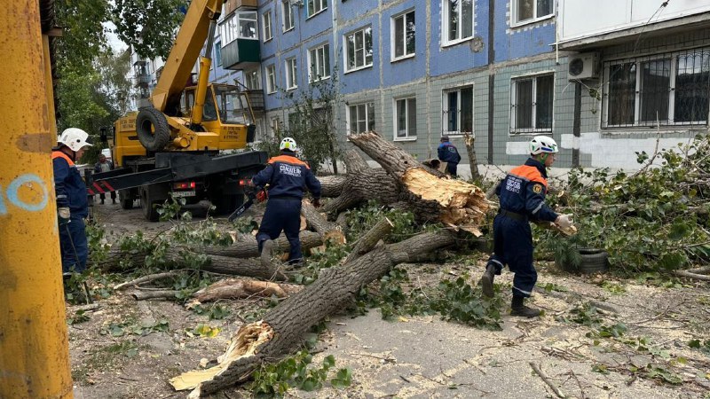 В связи с неблагоприятными погодными условиями на многоквартирный дом в городе Зверево по улице 47 Гвардейской Дивизии, 10, упало дерево.