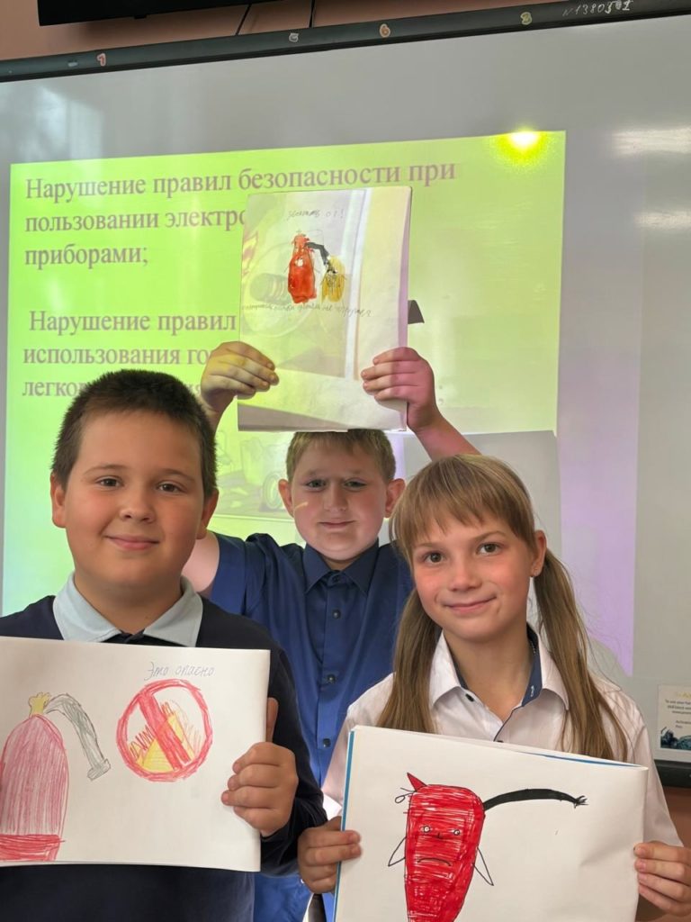 В этот день ученики  4 «б» класса  ознакомились с правилами пожарная безопасности, узнали о причинах возгораний и угрозах для здоровья и жизни человека.