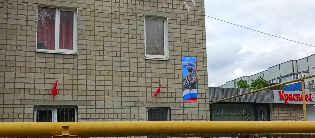 Жители многоквартирного дома на улице Макаренко украсили дом флажками к 80-летию Великой Победы.