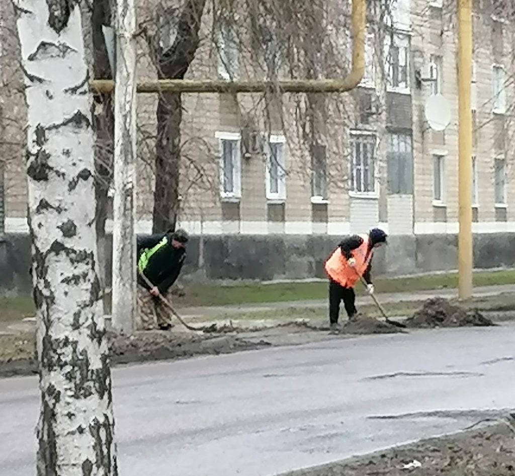 В поселке шахты «Гуковская» работники коммунальных служб приводят в порядок проезжую часть и обочины дорог