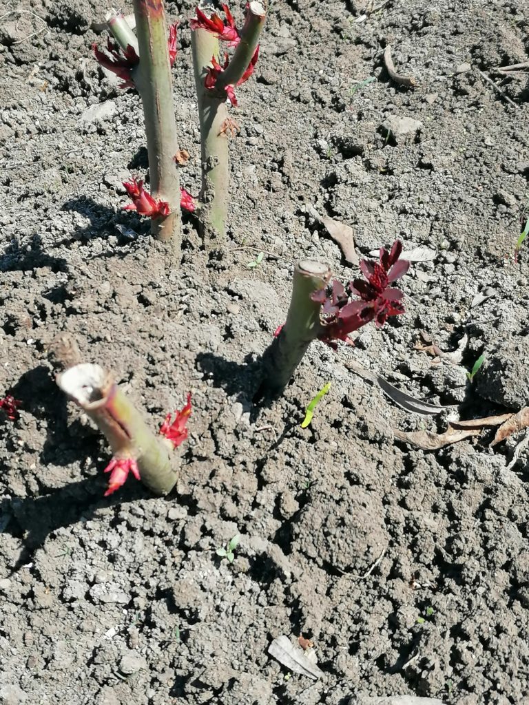 Розы пустили молодые побеги