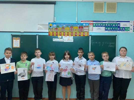 Учащиеся 4 «б» класса создали яркие рисунки редких видов рыб и птиц, занесенных в Красную книгу России.