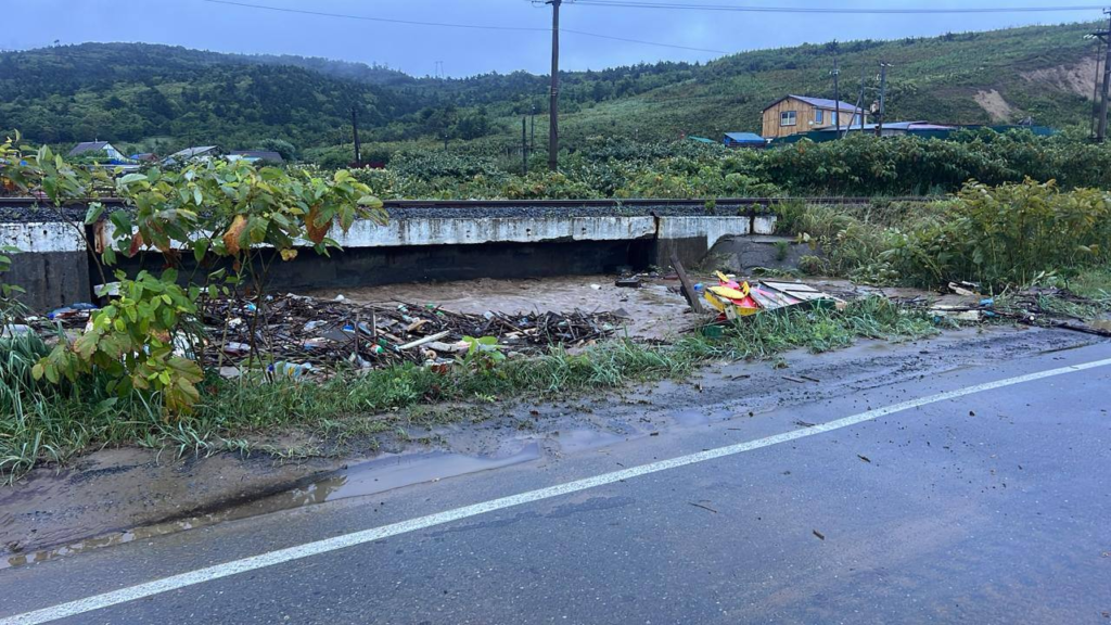 Паводок разорвал трассу Невельск–Шебунино, движение полностью перекрыто. Водителям приходится искать объездные пути.