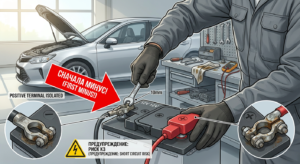 Ключевой приём — последовательность. По данным njcar.ru, минусовую клемму снимают первой. Металлический ключ + кузов = риск КЗ при касании плюса. Искра — мелочь, хуже повреждения ECU.