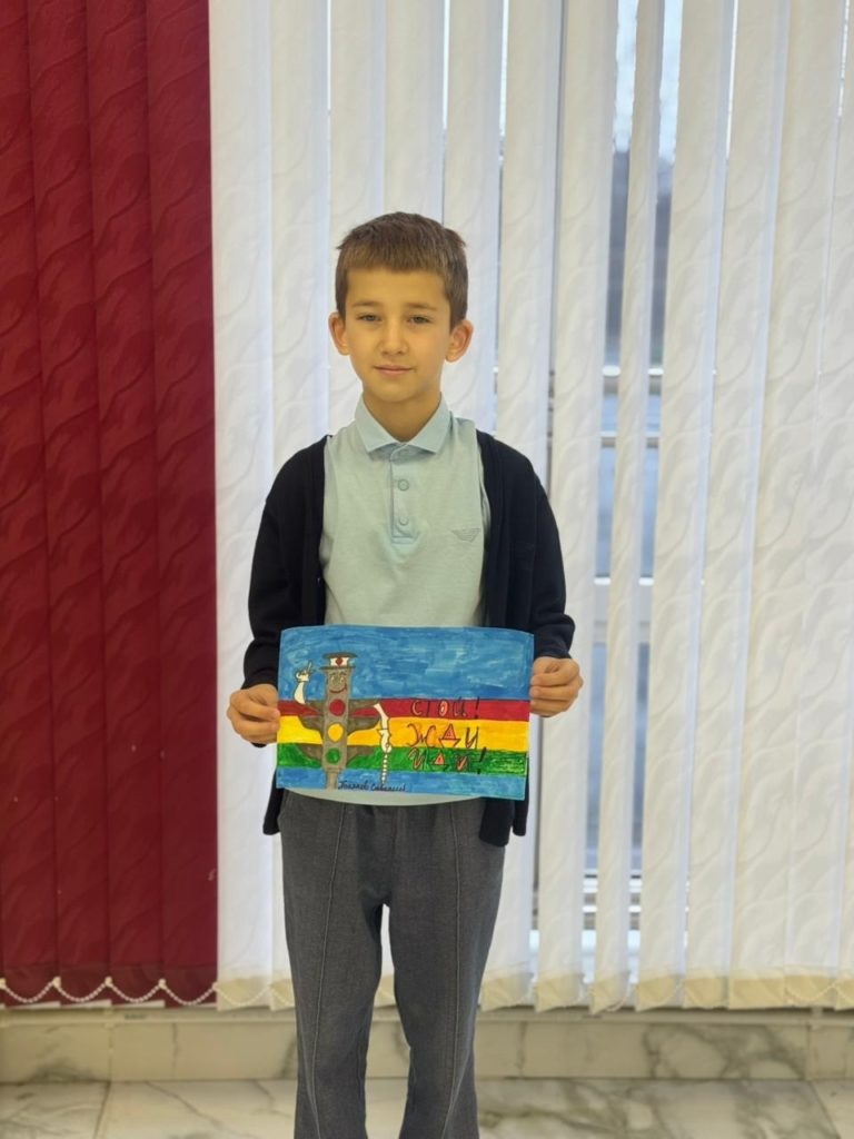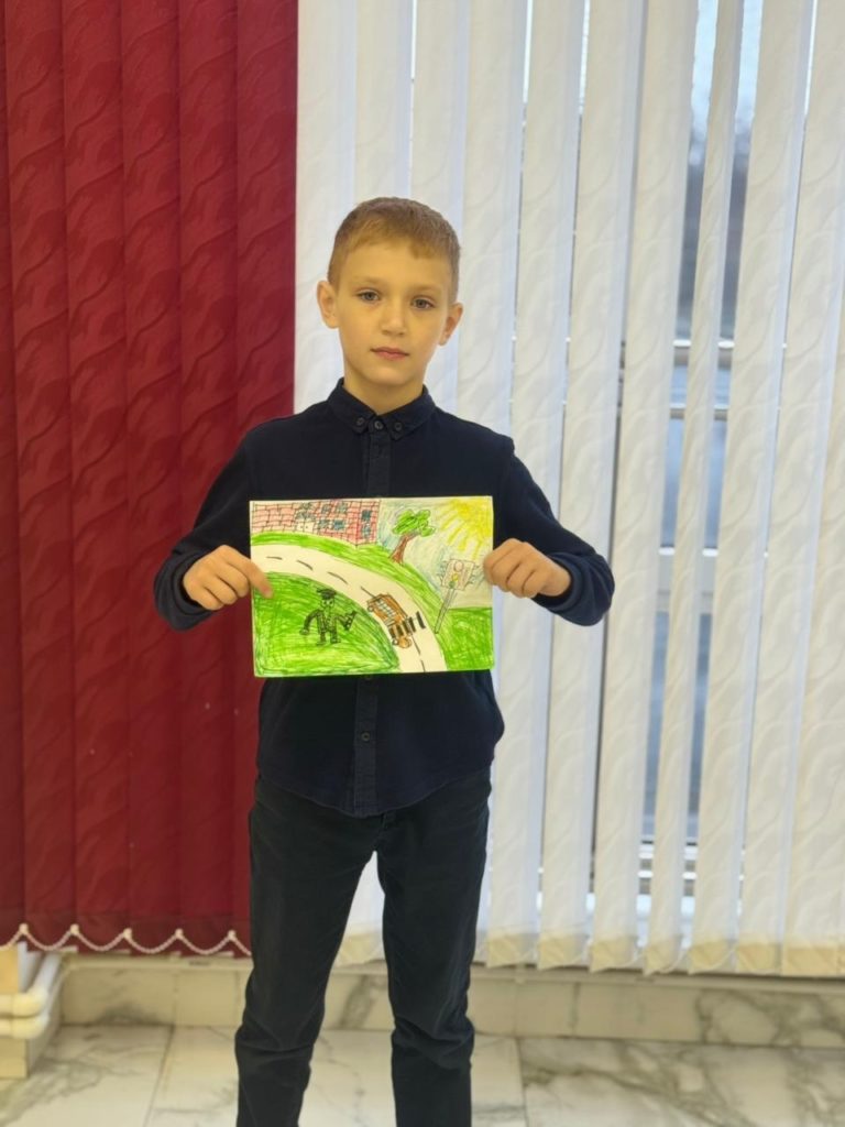 Ребята подготовили тематические рисунки, посвященные правилам дорожного движения.