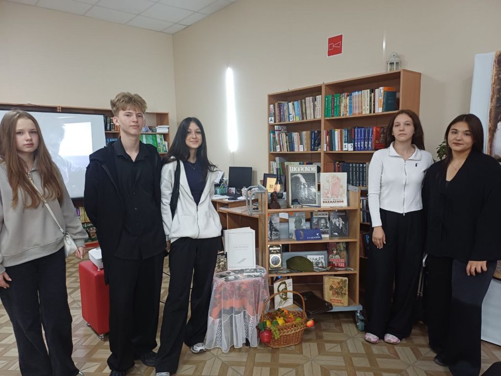 В этот день библиотекарь Кристина Кузнецова ознакомила школьников с биографией и творчеством донского писателя Михаила Шолохова.
