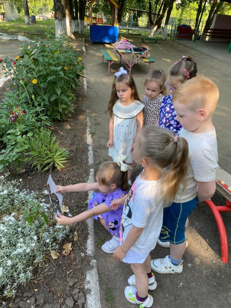 Еще ребята отправились на прилегающую к детскому саду территорию и освоили технику определения вида и названия растений по трафарету листьев и цветов.