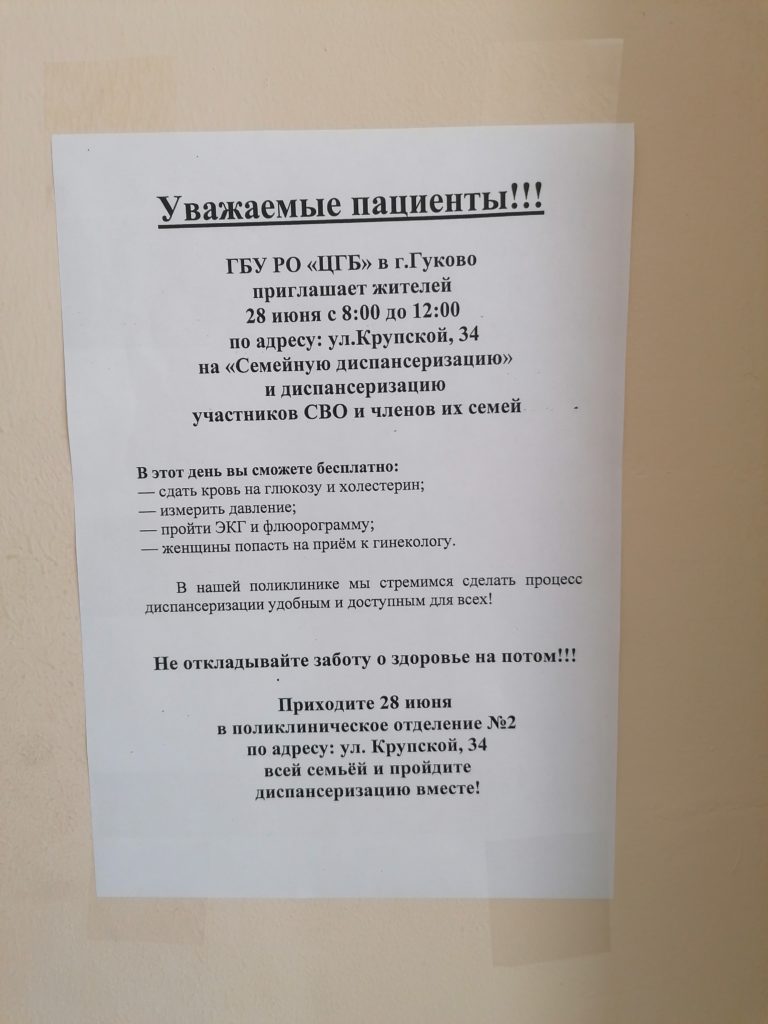 Главная // Новости // В поликлиническом отделении №2 города Гуково диспансеризацию теперь можно пройти и в субботу