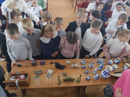 Выставку посетили ученики вторых-восьмых классов. Ребята ознакомились с народными традициями и узнали немало интересного о хохломской росписи, Гжели, производстве матрёшек и других символов России.