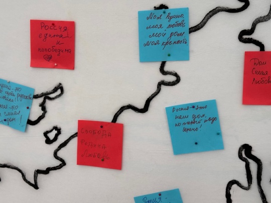 Участники акции – горожане всех возрастов – оставили на стенде отзывы-ассоциации со словами «Россия» и «Родина».