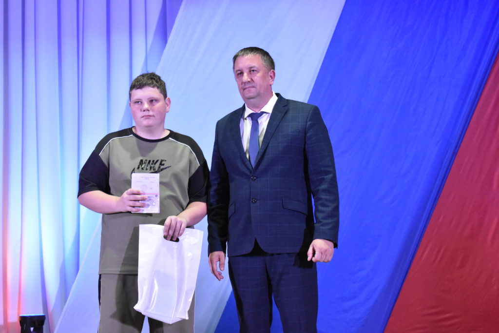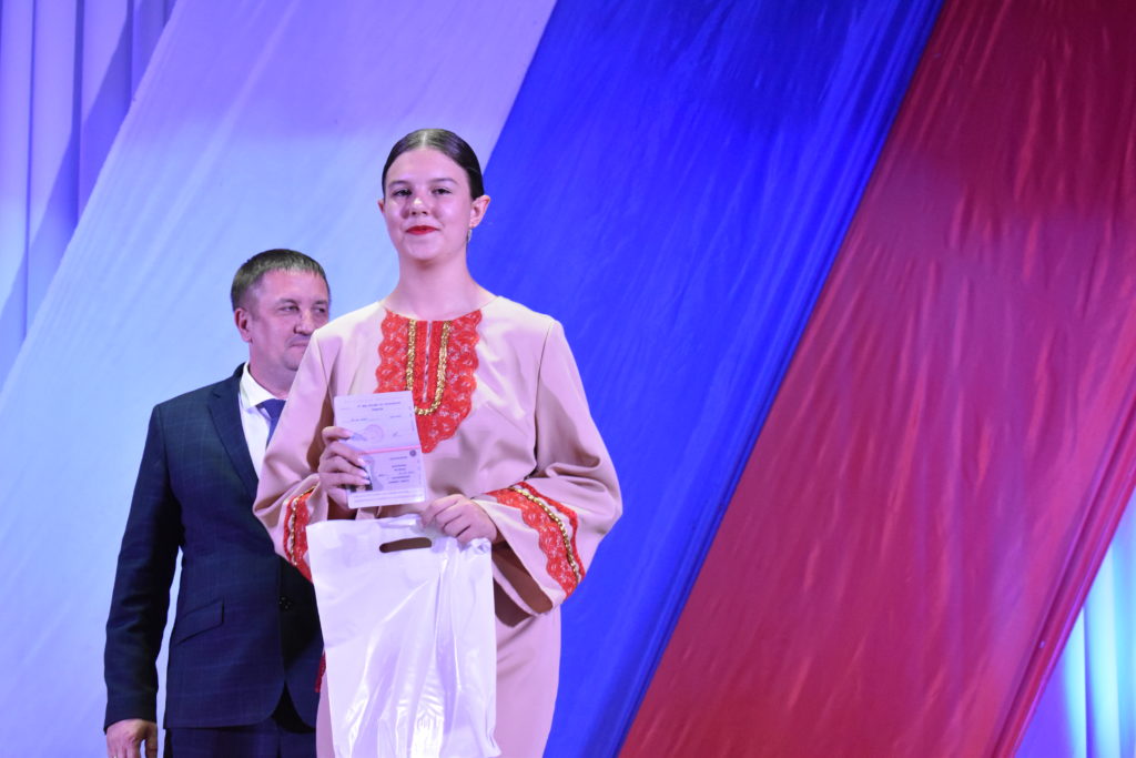 Жителей города с праздником поздравил глава администрации Александр Лотарев и вручил восьмерым школьникам их главный документ — российский паспорт. Александр Валентинович пожелал собравшимся в зале бережно хранить вековые традиции и духовные ценности российского народа, добиваться успехов, добросовестно учиться и трудиться на благо великой страны.