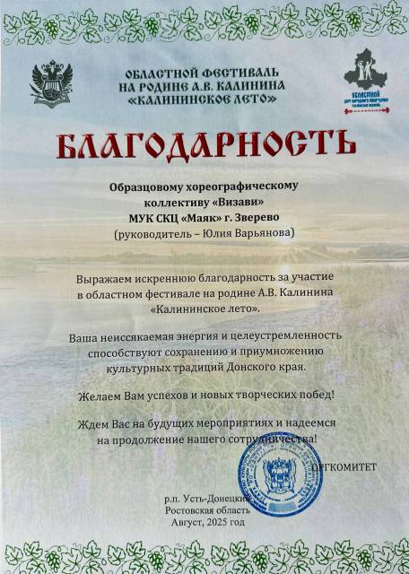 »Мы бесконечно благодарны за возможность стать частью этого значимого события, сохраняющего культурное наследие Донского края! Спасибо за поддержку и приумножение традиций!», — сказала руководитель коллектива «Визави».