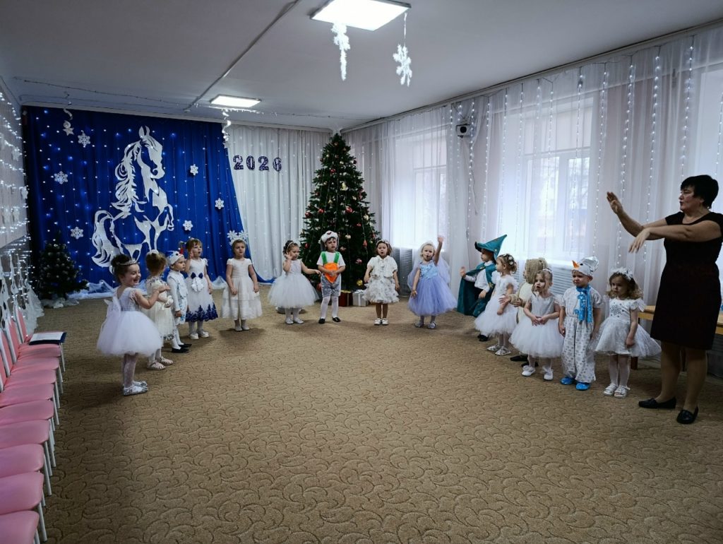 В этот день дошколята вместе с Дедом Морозом, Снегурочкой и Кикиморой водили хоровод и наряжали лесную красавицу.
