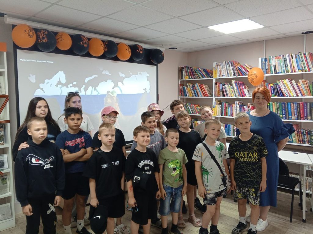 Также дети  посмотрели мультфильм  «Мульти Россия» и  посетили открытый просмотр литературы «Мое Отечество-Россия».