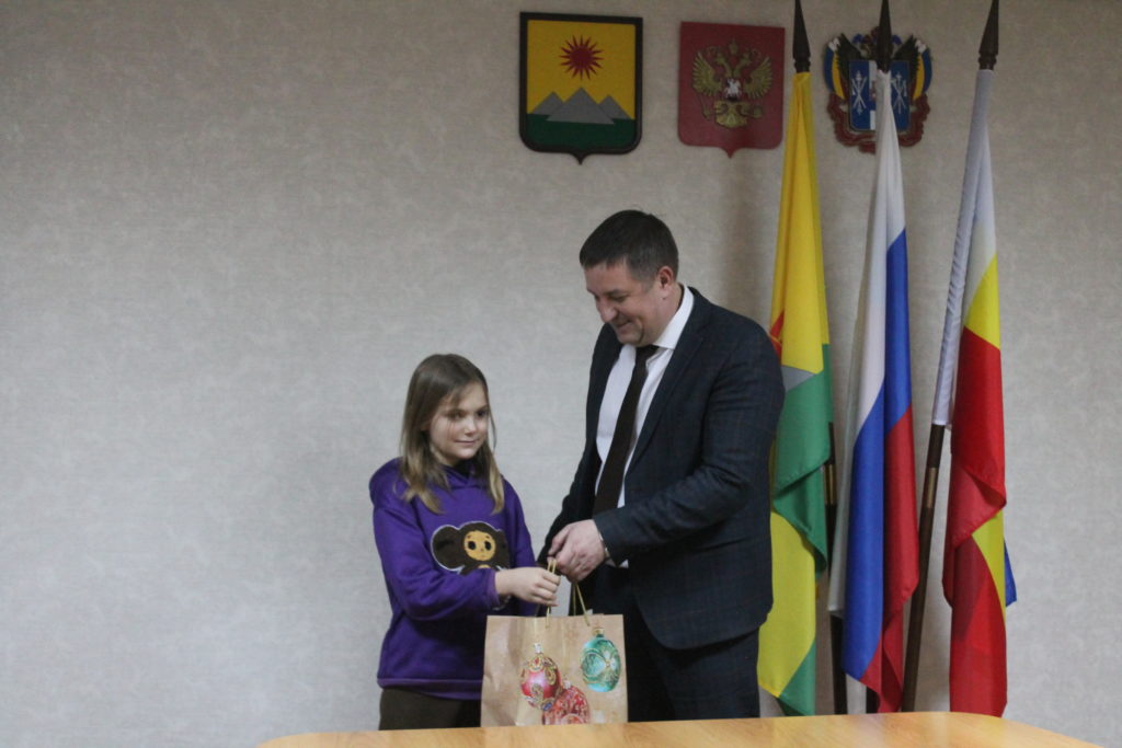 Глава города Зверево Александр Лотарев поздравил с наступающим Новым годом и вручил подарки детям, которые по итогам года были сняты с учета в комиссии по делам несовершеннолетних.