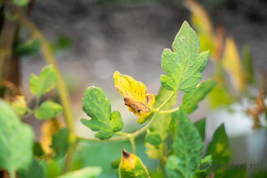 Пожелтение листьев у томатов часто вызвано грибковыми и вирусными заболеваниями.